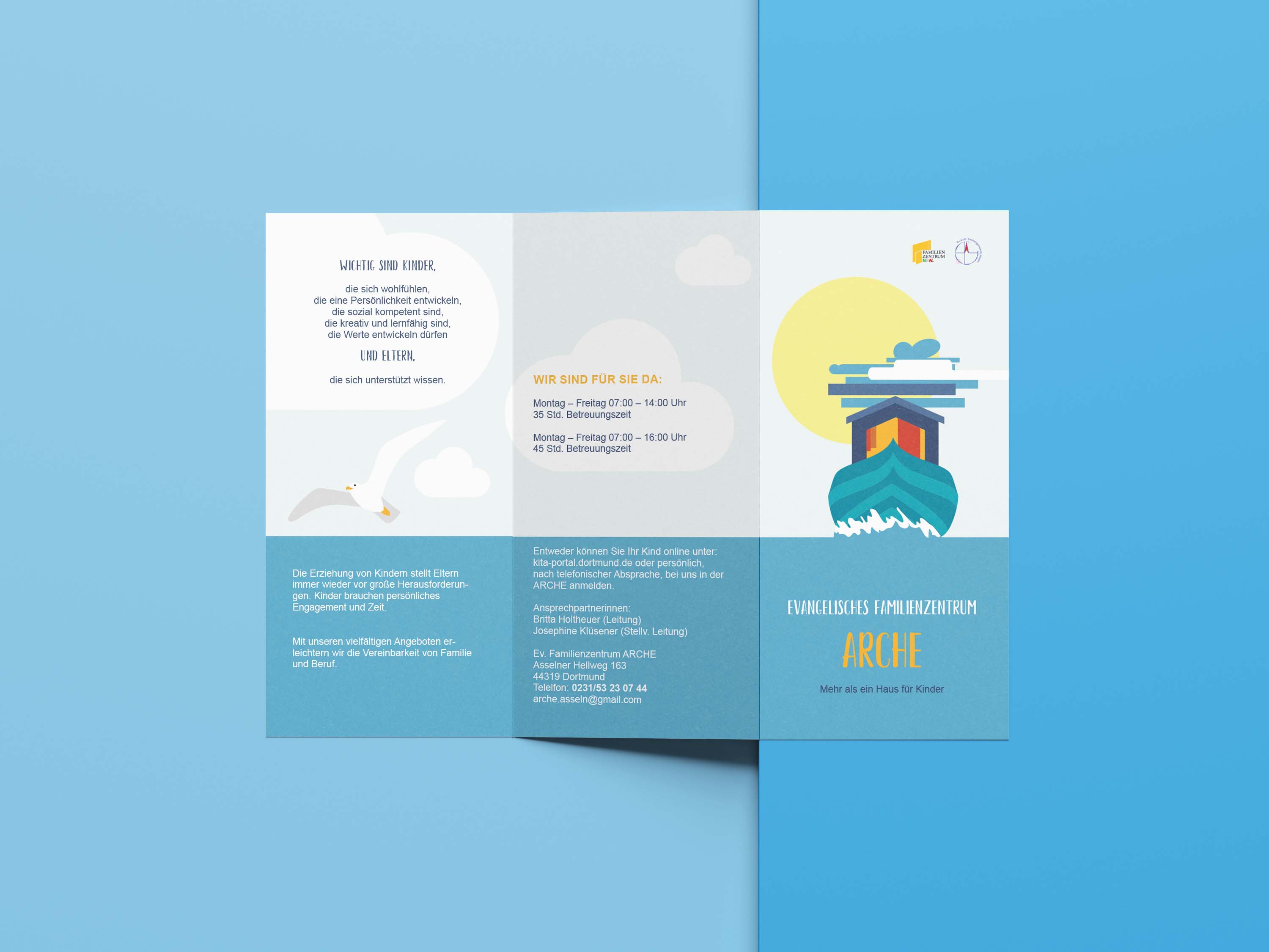 Die Arche ist ein evang. Kindergarten in Dortmund Asseln, für den ich thematisch passende und freundliche Flyer erstellt habe. Außerdem sollte für den Förderverein des Kindergartens ebenfalls ein Flyer und eine Website mittels WordPress umgesetzt werden.