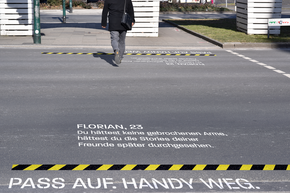 „Pass auf. Handy weg“ ist eine Kampagne gegen den Gebrauch von Smartphones von Fußgängern im Straßenverkehr.